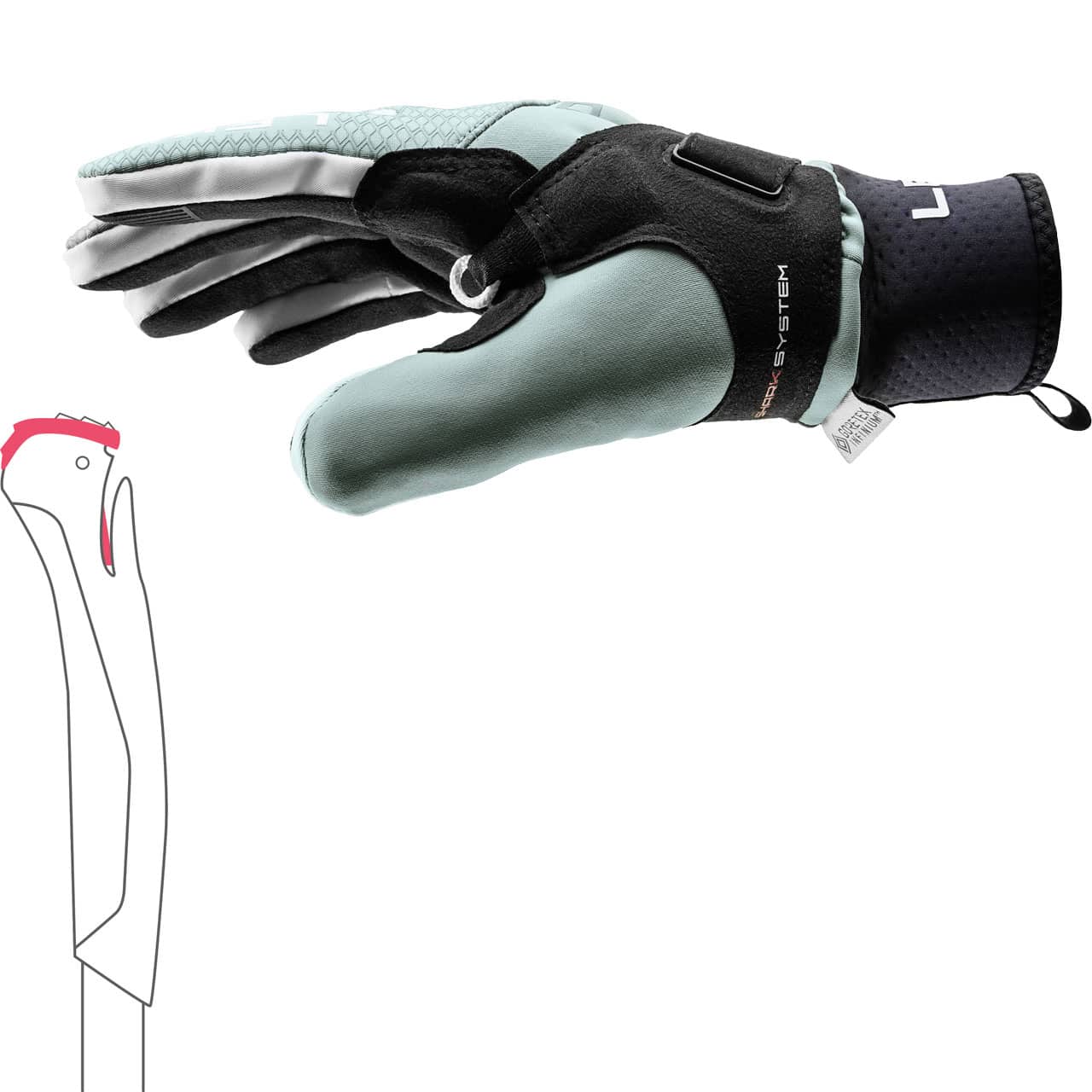 L'isolamento Primaloft® Cross Core™ e la fodera GORE-TEX® INFINIUM™ garantiscono un calore eccezionale e un'eccellente resistenza al vento. Dotato di Shark System e progettato per l'uso con la nuova impugnatura Nordic Shark, questo guanto assicura un efficiente trasferimento di potenza al bastoncino.