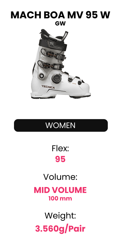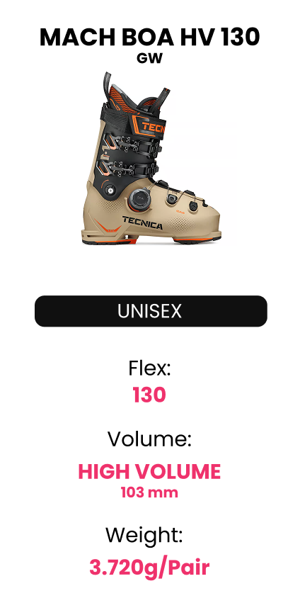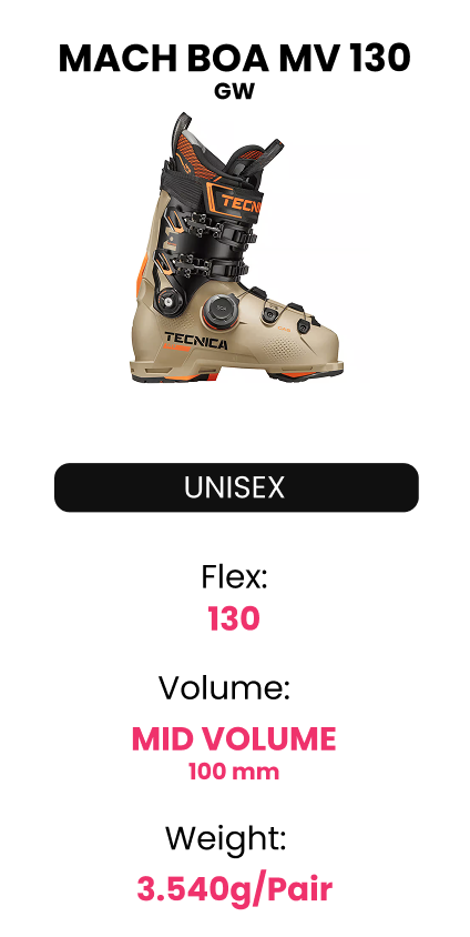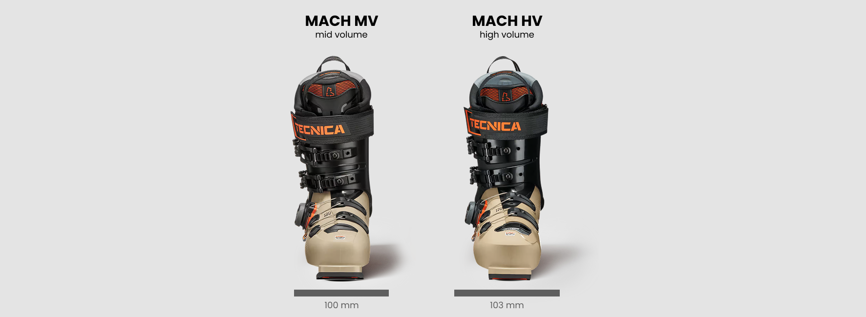 Tecnica propone due diverse misure di volume per i modelli MACH BOA, per garantire una calzata ottimale per ogni forma del piede.